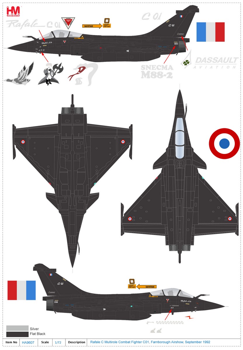 Dassault Rafale C C01 Demonstrator, Farnborough Airport, England, Farnborough Airshow 1992 Diecast Aircraft Model 1.72 Scale Hobbymaster HA9607
