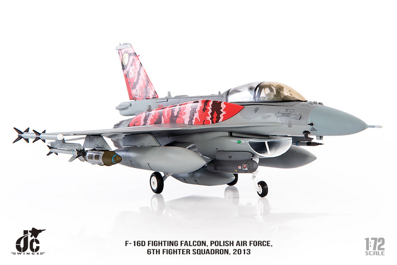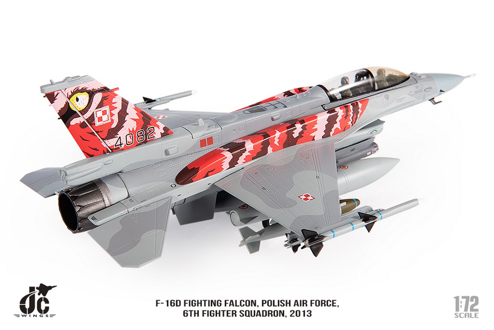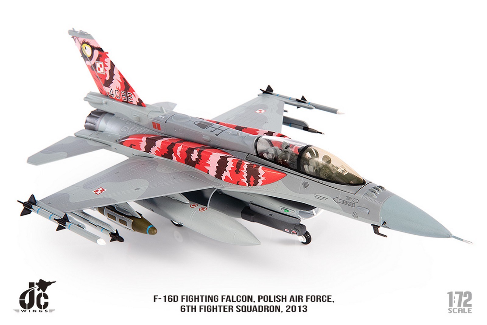 F-16D Fighting Falcon, Polish Air Force, 6th Fighter Squadron, 2013 Reg 4082 Diecast Metal Aircraft Model 1.72 Scale Jcwings JCW-72-F16-017