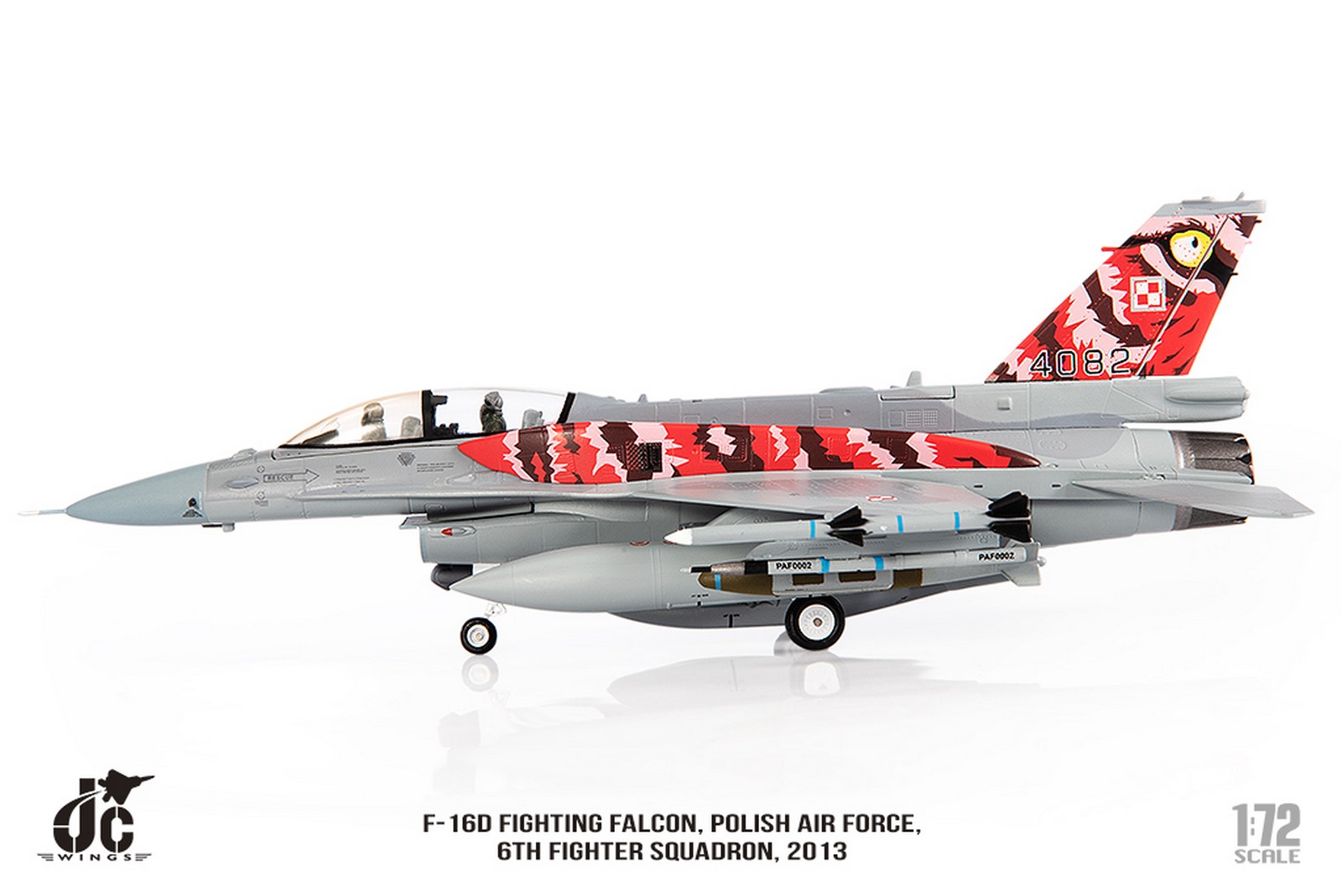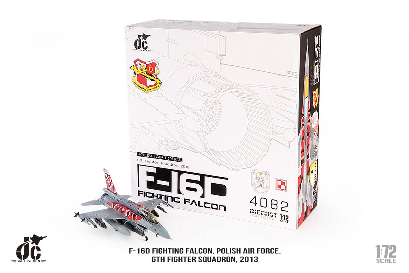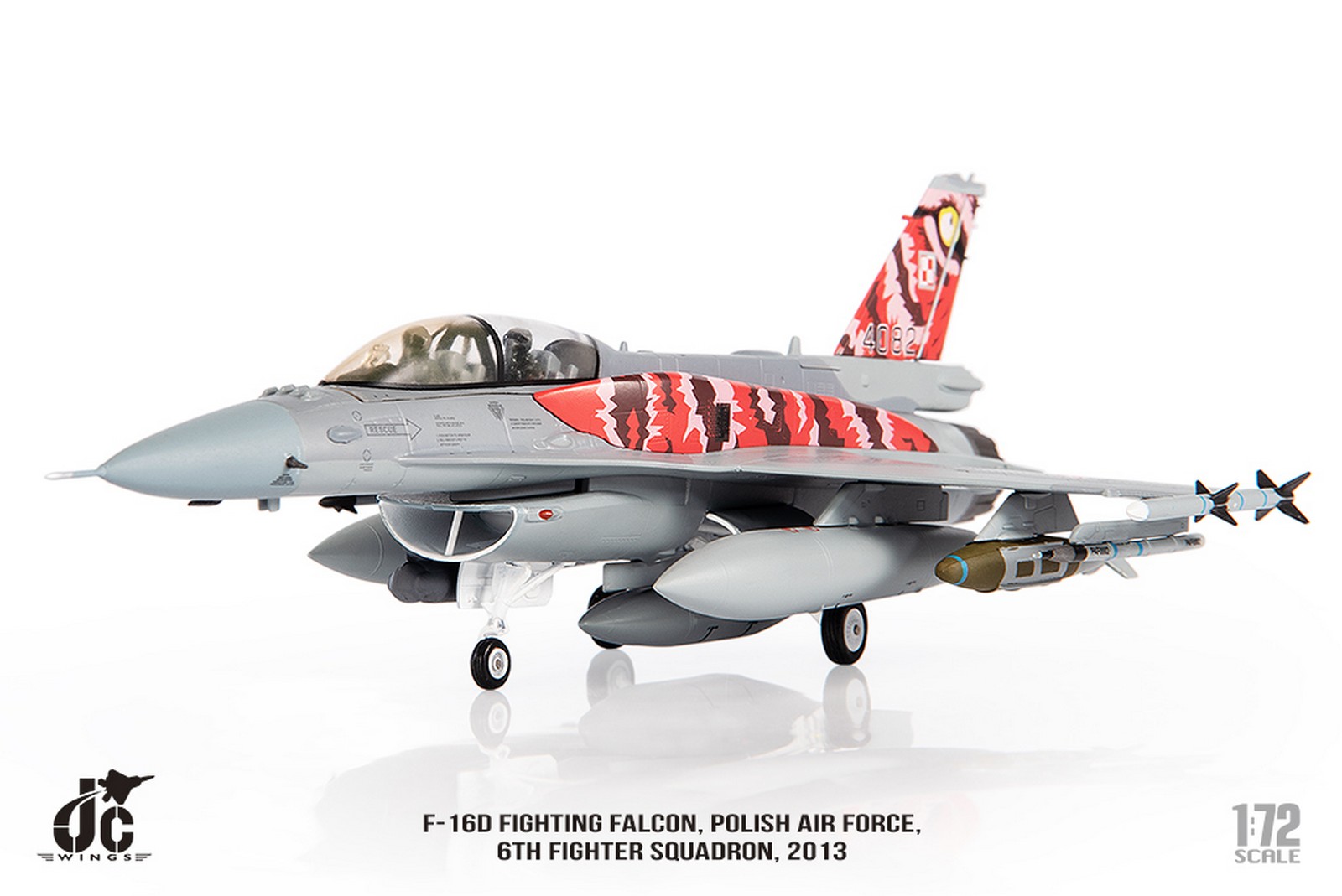 F-16D Fighting Falcon, Polish Air Force, 6th Fighter Squadron, 2013 Reg 4082 Diecast Metal Aircraft Model 1.72 Scale Jcwings JCW-72-F16-017