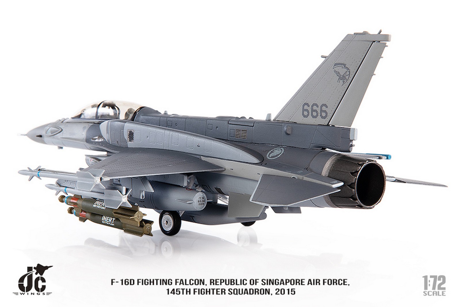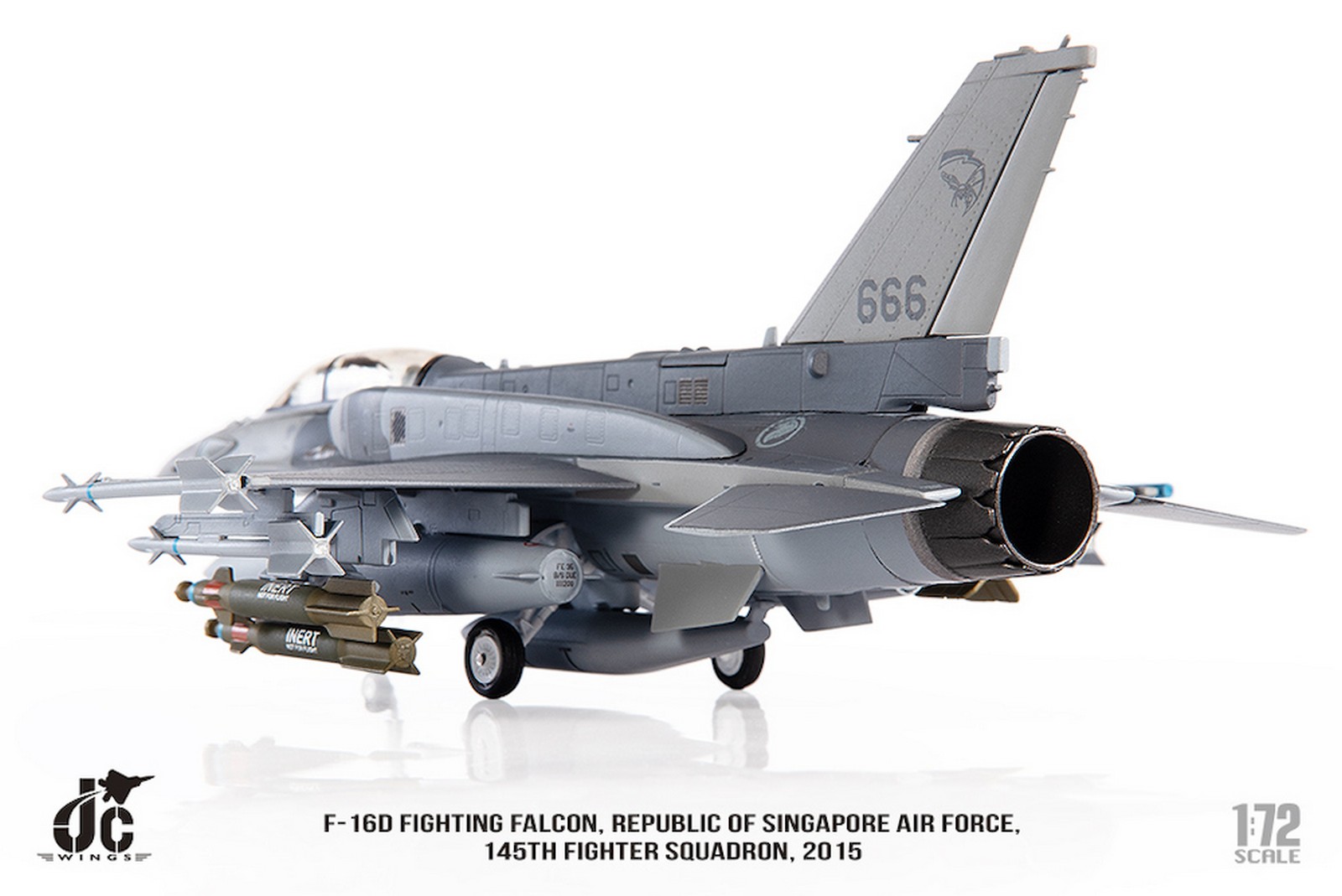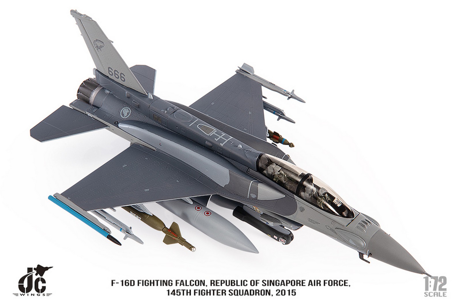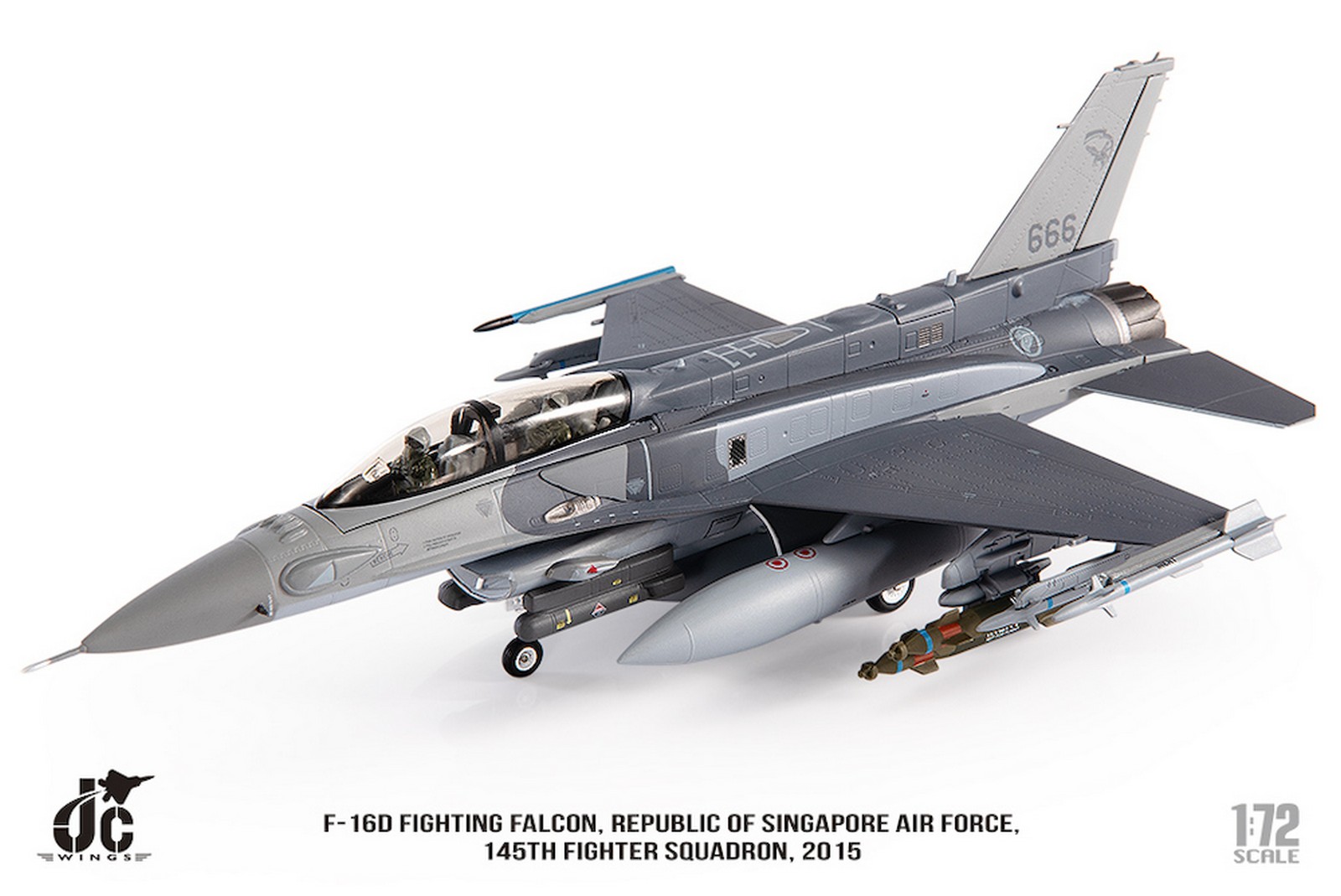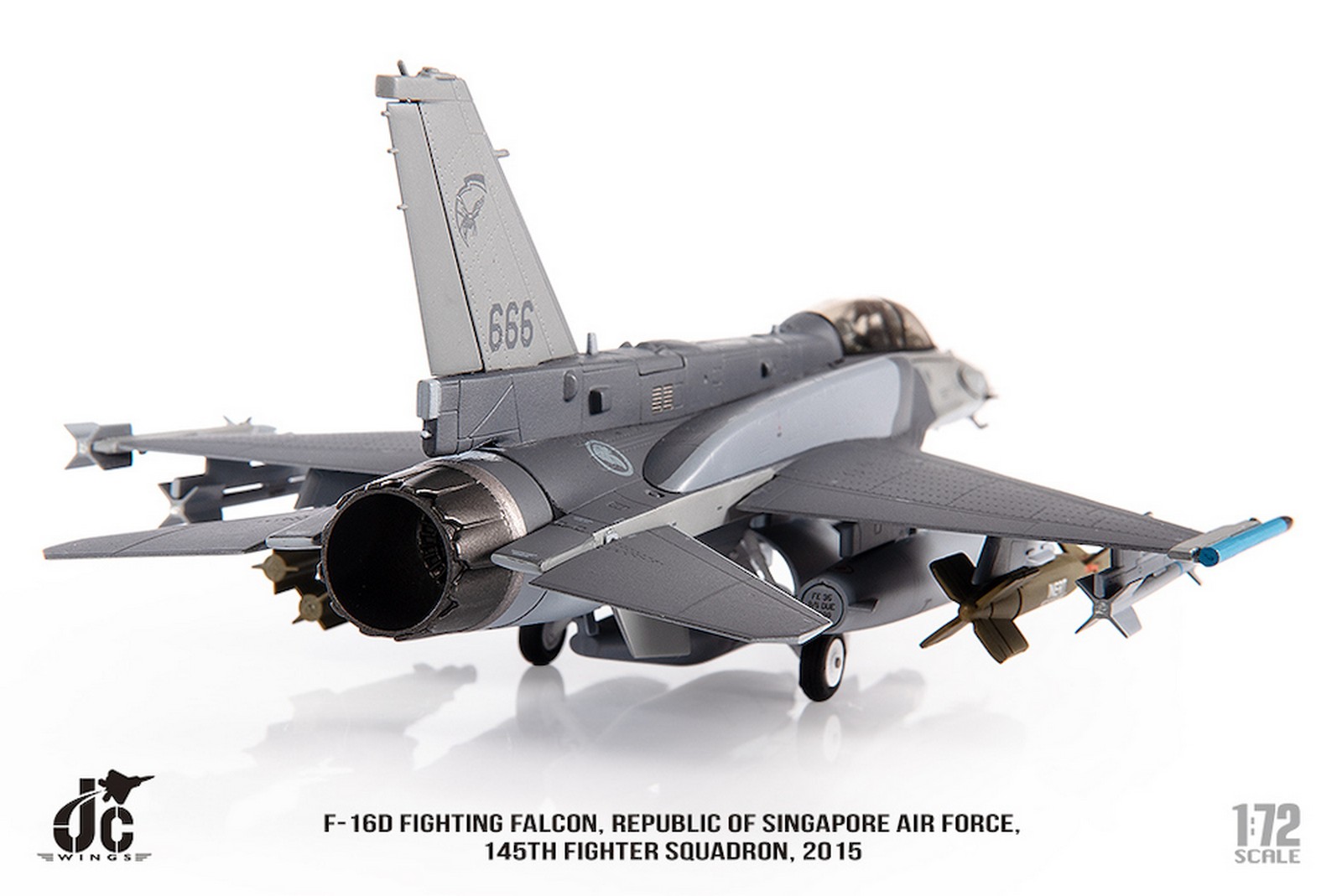 F-16D Fighting Falcon, Republic of Singapore Air Force, 145th Fighter Squadron, 2015 Reg 666 Diecast Metal Aircraft Model 1.72 Scale Jcwings JCW-72-F16-019