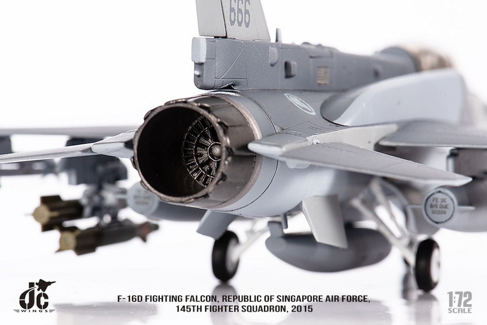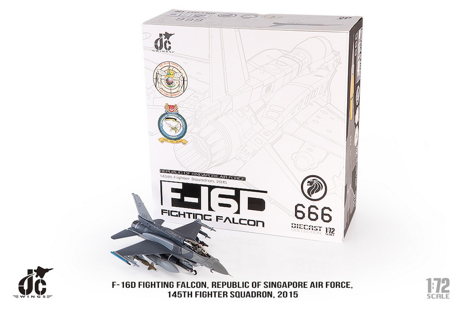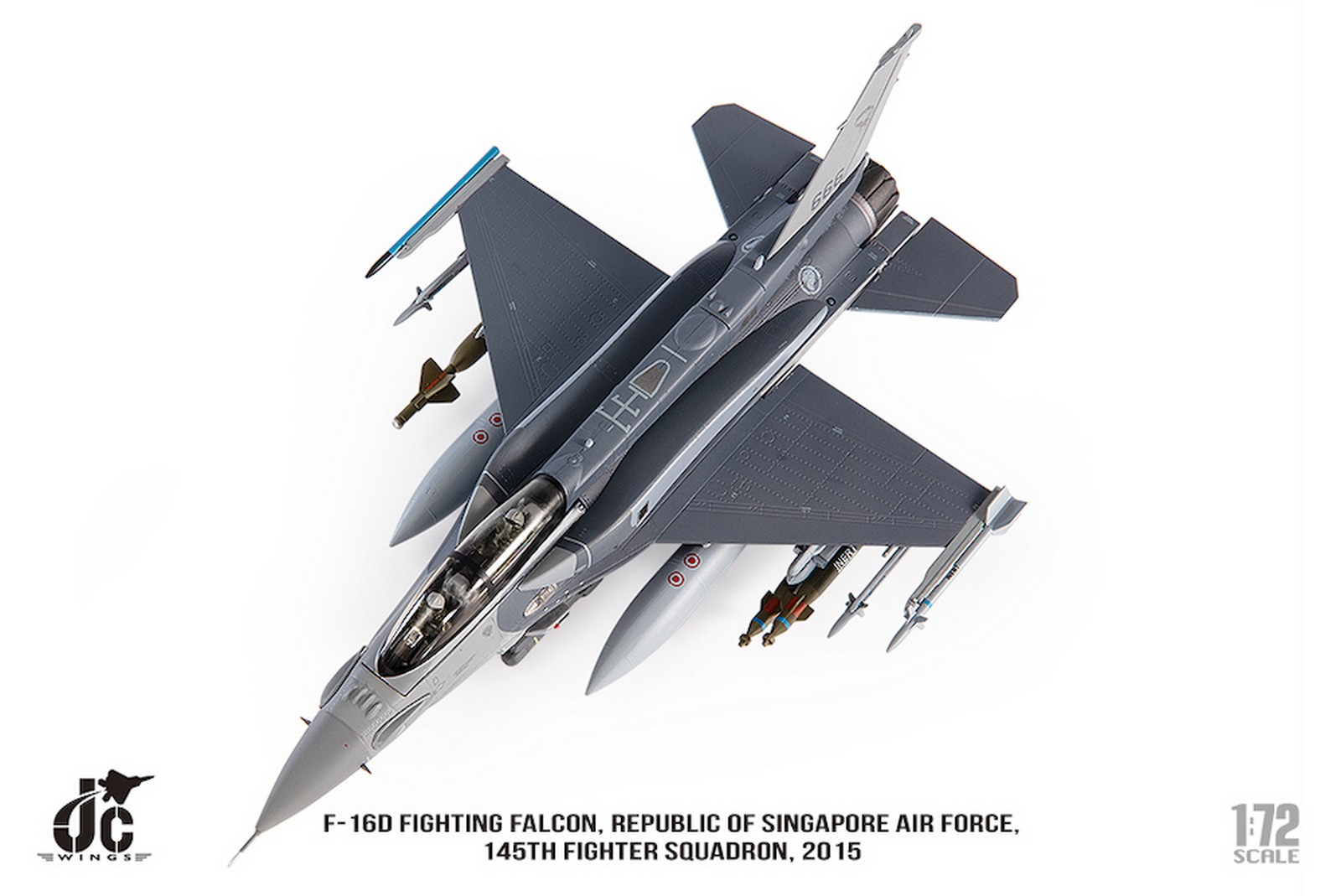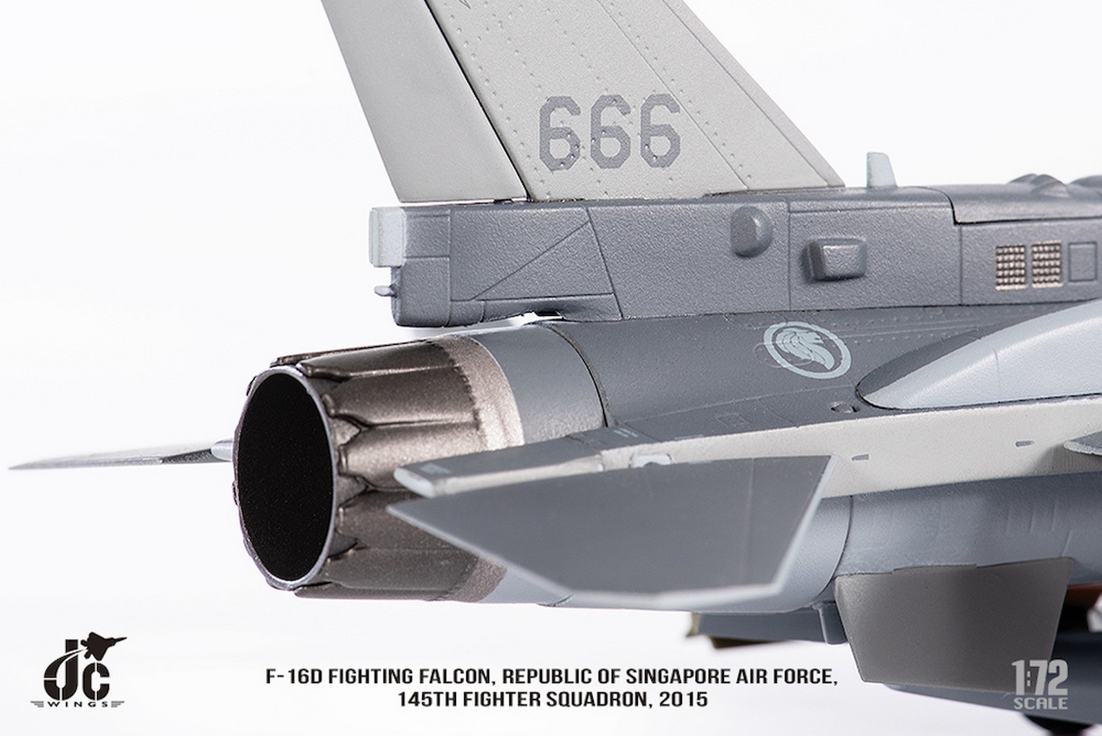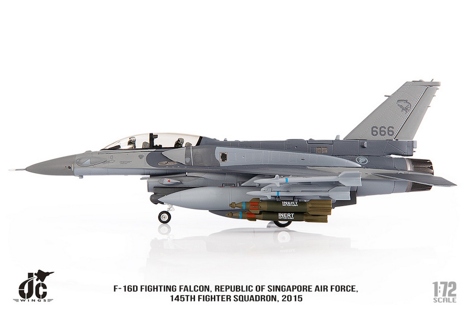F-16D Fighting Falcon, Republic of Singapore Air Force, 145th Fighter Squadron, 2015 Reg 666 Diecast Metal Aircraft Model 1.72 Scale Jcwings JCW-72-F16-019