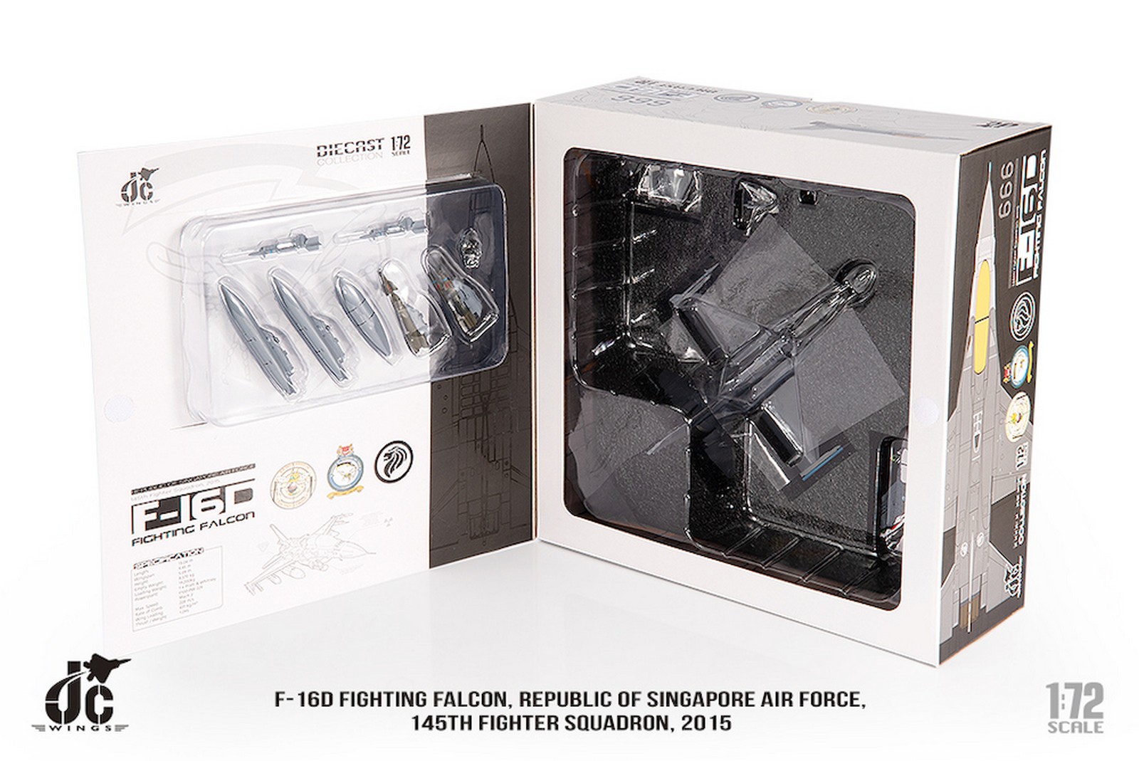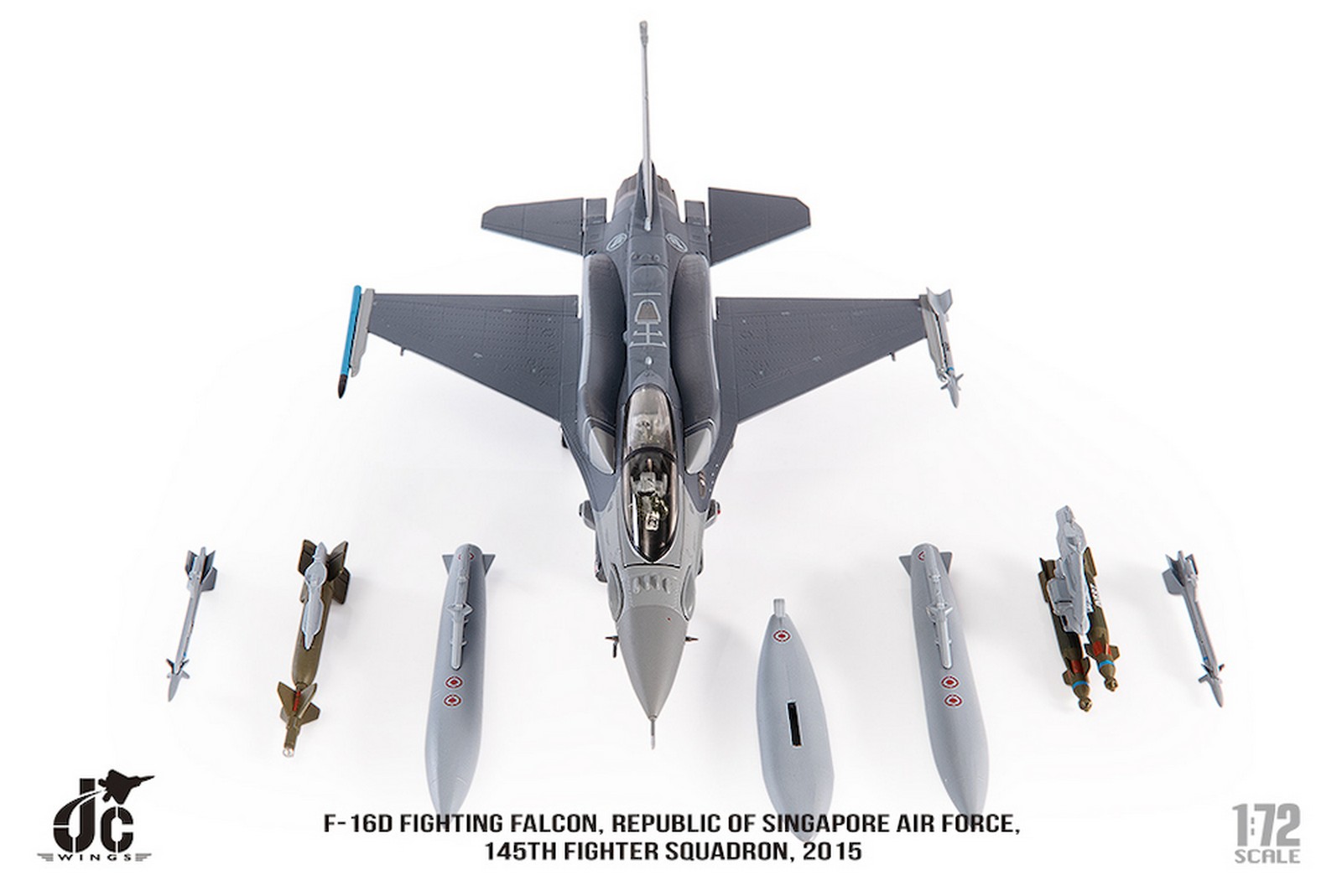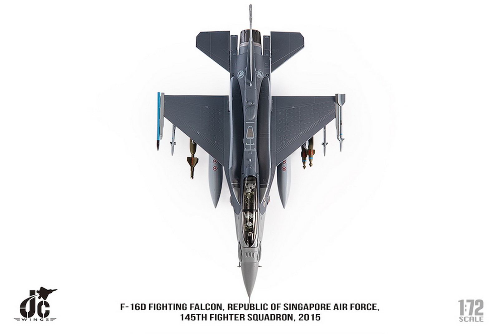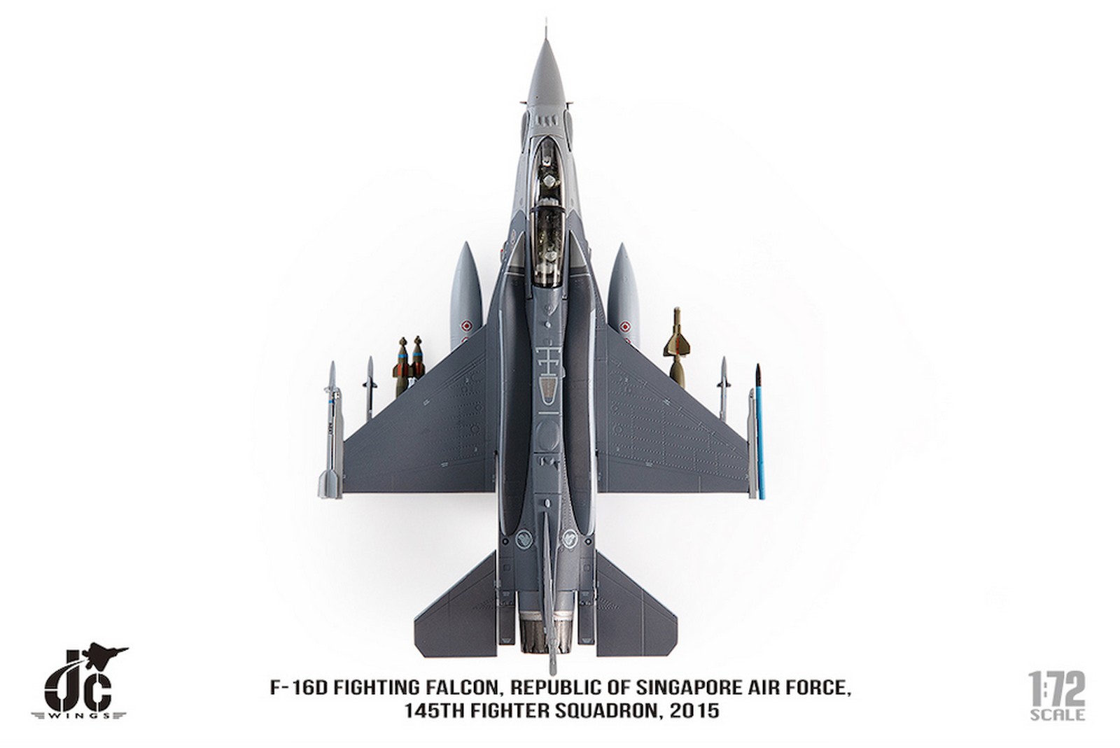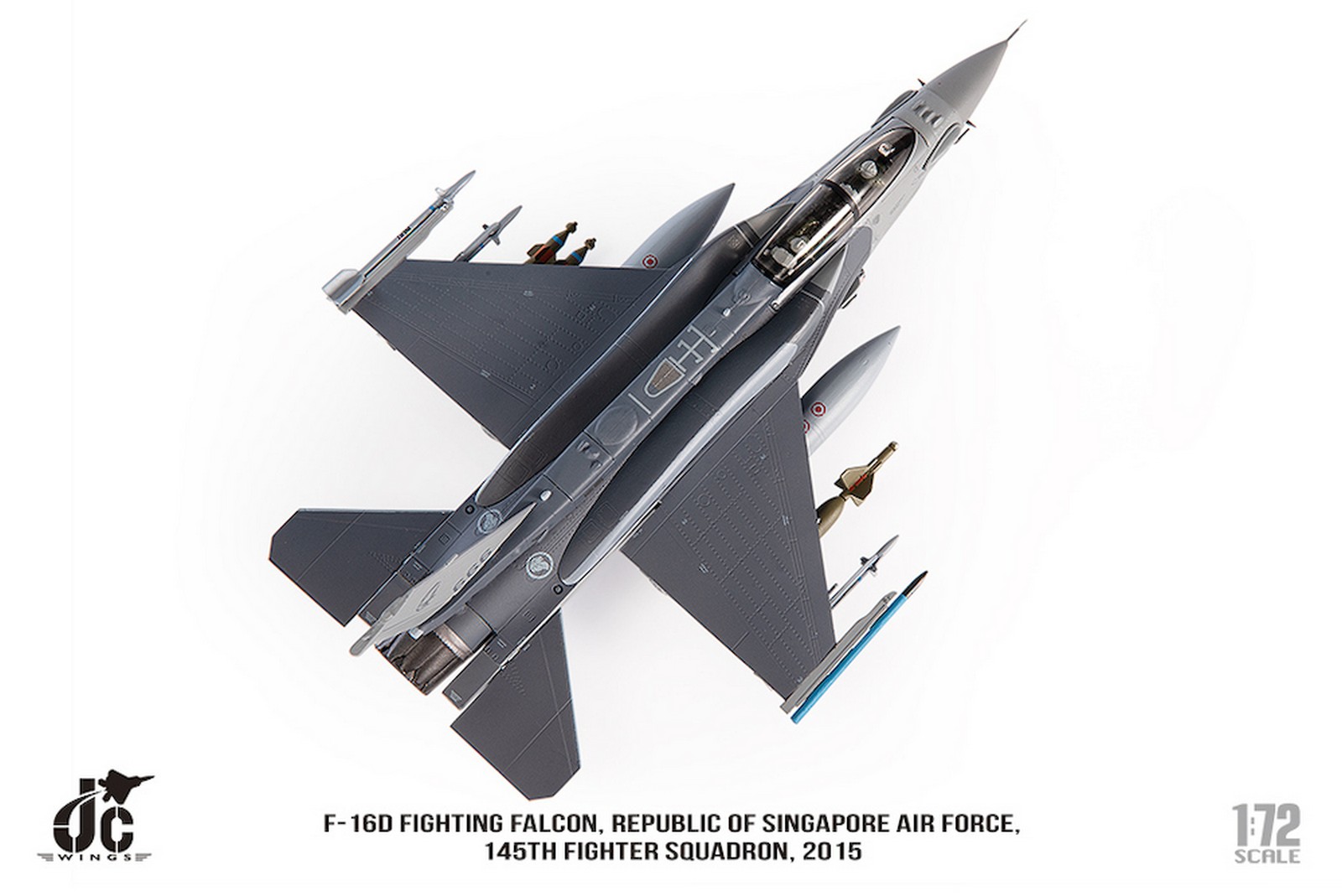 F-16D Fighting Falcon, Republic of Singapore Air Force, 145th Fighter Squadron, 2015 Reg 666 Diecast Metal Aircraft Model 1.72 Scale Jcwings JCW-72-F16-019