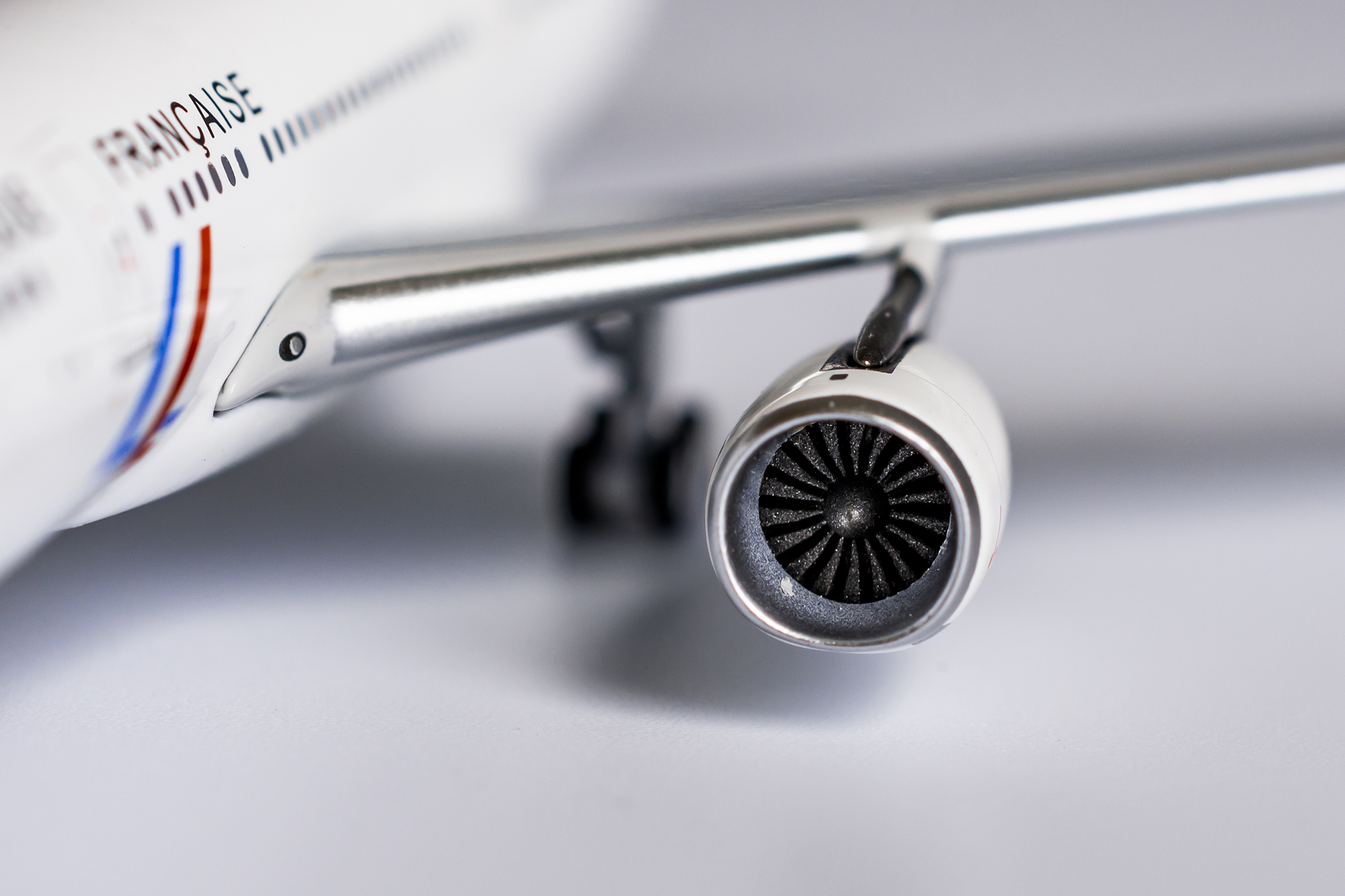 Features: Fixed metal landing gear support and rotating wheels, precise detailing and markings.
