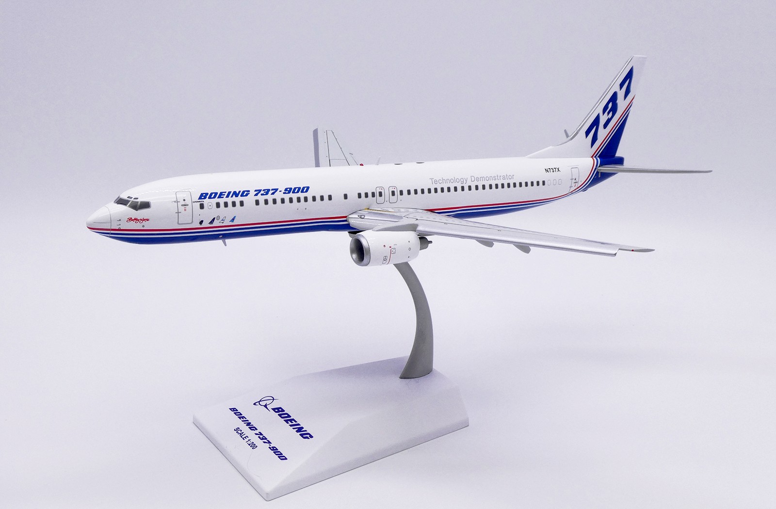 House Colors Boeing 737-900 Flaps Down Version with stand Reg N737X 1/200 Scale Diecast Metal Aircraft Model Jcwings LH2456A