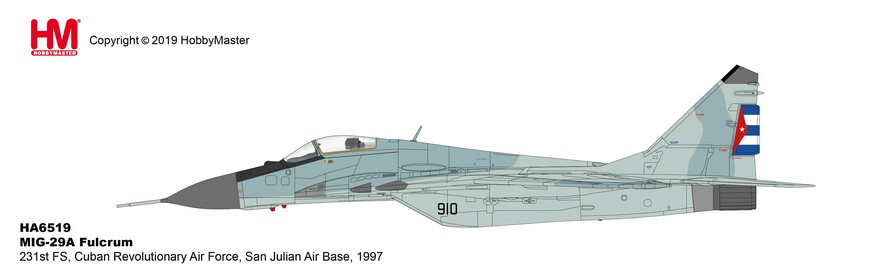 MIG-29A Fulcrum 231st FS, Cuban Revolutionary Air Force, San Julian Air Base, 1997 Reg 910 Diecast Metal Aircraft Model 1/72 Scale Hobbymaster HA6519