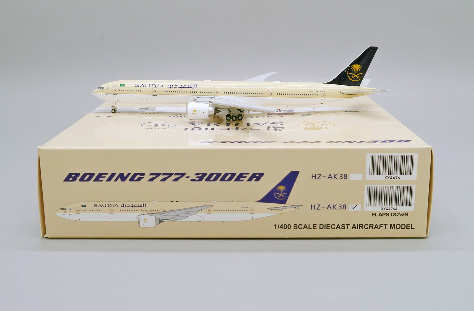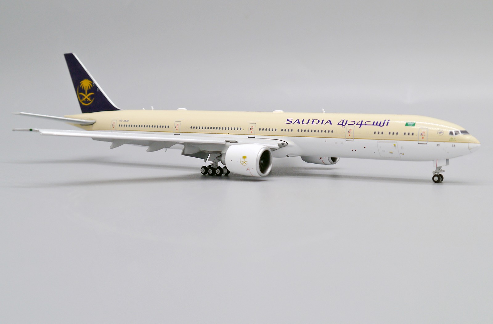 Saudi Arabian Boeing 777-300ER Flaps Down Version Reg HZ-AK38 1.400 Scale Diecast Metal Aircraft Model Jcwings XX4476A