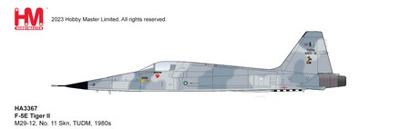The Royal Malaysian Air Force TUDM Northrop Grumman F-5E Tiger II, No. 11 Skn, TUDM, 1980s Reg M29-12 Diecast Aircraft Model 1.72 Scale Hobbymaster HA3367