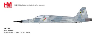 The Royal Malaysian Air Force TUDM Northrop Grumman F-5E Tiger II, No. 12 Skn, 1980s Reg M29-15 Diecast Aircraft Model 1.72 Scale Hobbymaster HA3368
